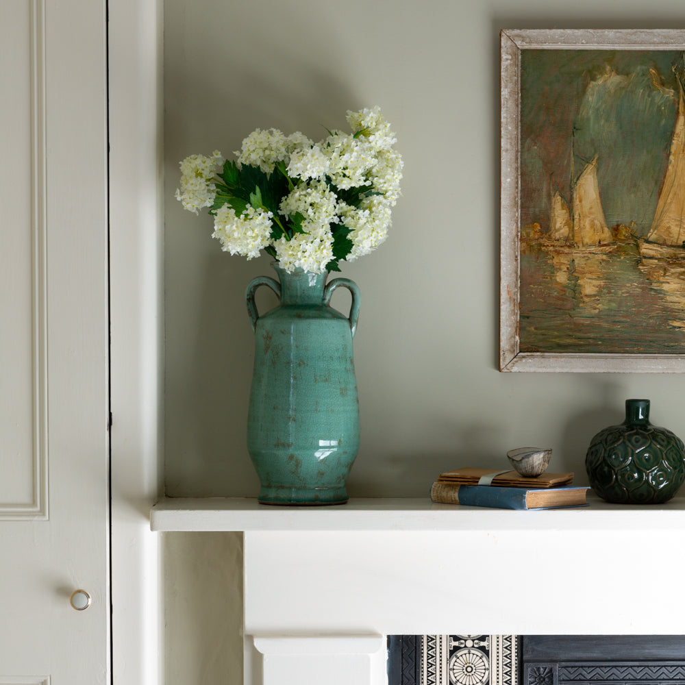 Adorn your mantelpiece with this elegantly designed vase, complete with handles and a rustic, chic finish. Display alone amongst some other ceramic ornaments from our collection or fill with a few dried flower stems and create a more striking feature.